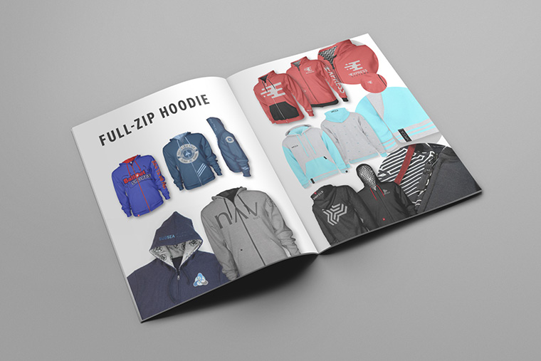 A 46-page catalog showcasing all the customizable products and services that HG Apparel offers for their customers.