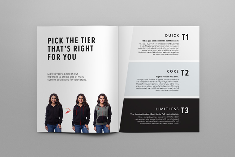 A 46-page catalog showcasing all the customizable products and services that HG Apparel offers for their customers.